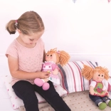 Hăinuța în nuanță roz, cu nasturi colorați și decorațiuni florale, le oferă copiilor posibilitatea de a crea un look stilat pentru păpușile lor.