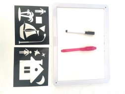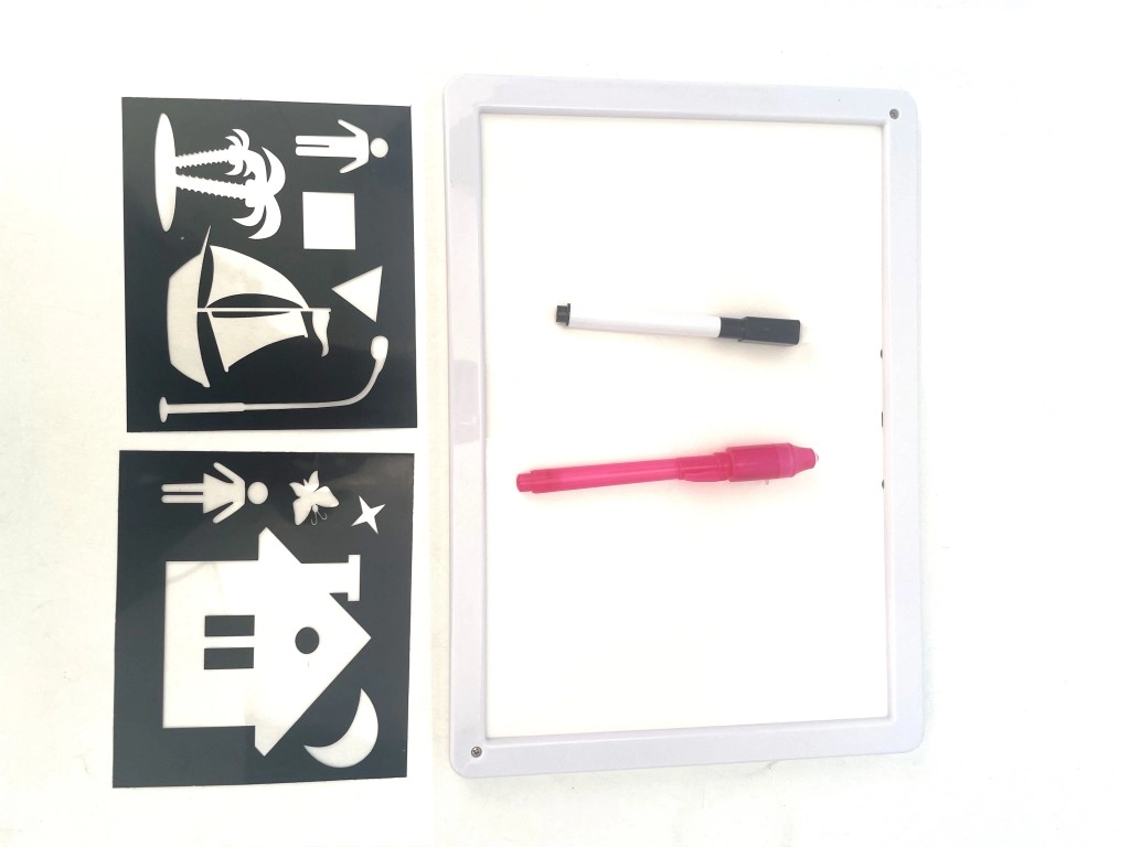 Descoperă distracția fără murdărie cu un instrument creativ pentru copii de la 3 ani. Această tabelă de desen ușoară, în format A4, permite desenarea cu un creion special luminos și crearea de imagini magice care strălucesc în întuneric. Datorită designului față-verso, oferă utilizare dublă – desen luminos și desen obișnuit pe suprafață albă. În pachet găsești 2 creioane, șabloane de forme și baterii LR44 pentru utilizare imediată.