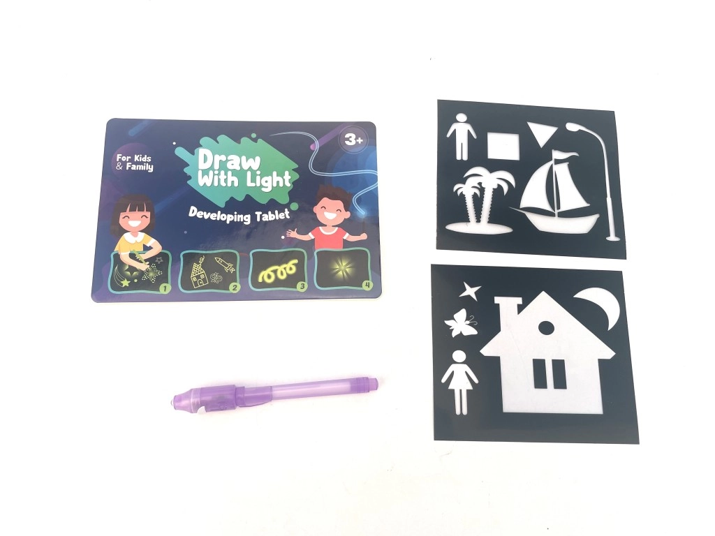 Această tăbliță de desen inovatoare aduce copiilor un mod nou de a crea – desen cu lumină fără cerneală și hârtie. Astfel, joaca este curată, sigură și distractivă, susținând în același timp motricitatea fină, creativitatea și imaginația. Trebuie doar să stingeți luminile și să priviți cum desenele de pe tăbliță strălucesc magic.