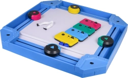 Arena robustă din plastic, cu margini înălțate, menține jocul sub control, iar discurile și modulele de palete colorate oferă claritate și stil. Elementele de joc sunt alimentate de acumulatori 3,7 V (incluși), iar telecomenzile folosesc baterii 2× AA 1,5 V (neincluse). Ideal ca cadou și o alegere excelentă pentru distracție activă fără ecrane.