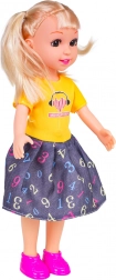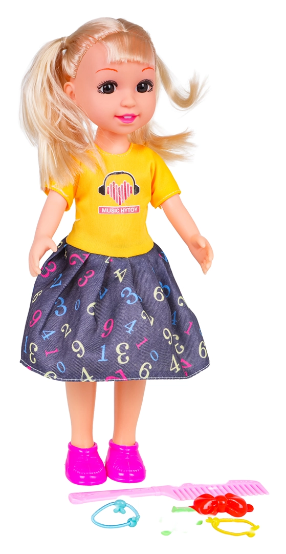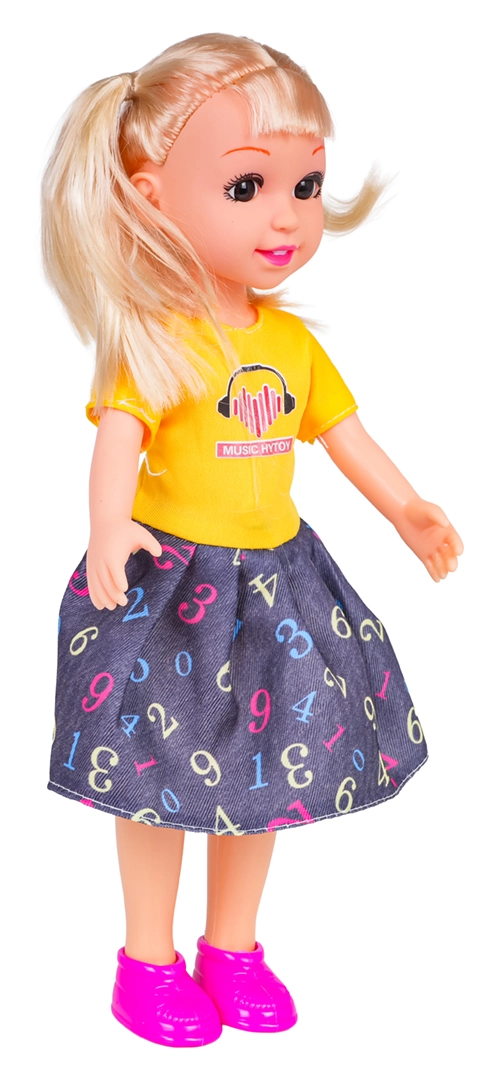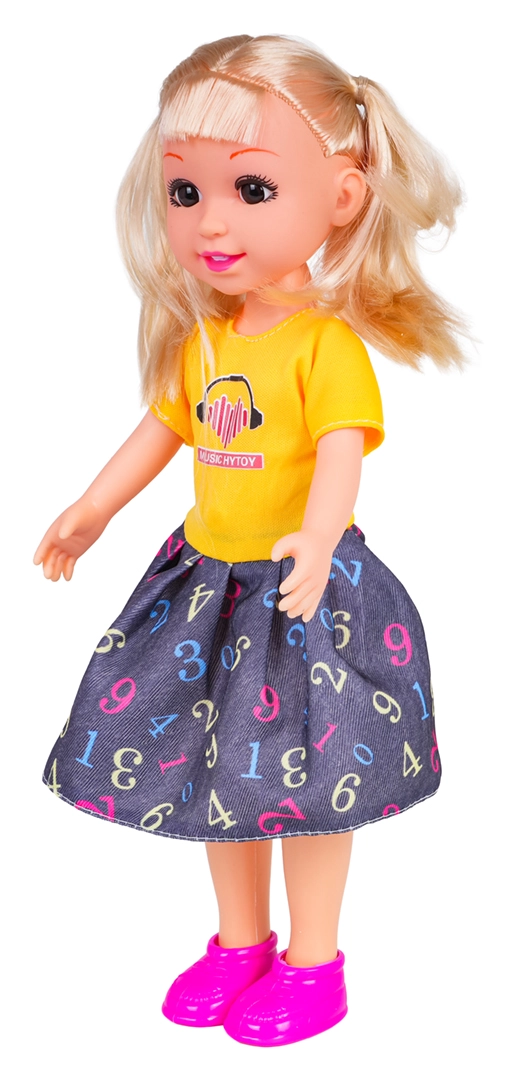 La apăsarea butonului de pe burtică, păpușa redă melodii vesele și adresează întrebări care implică copiii în joc și le susțin comunicarea.