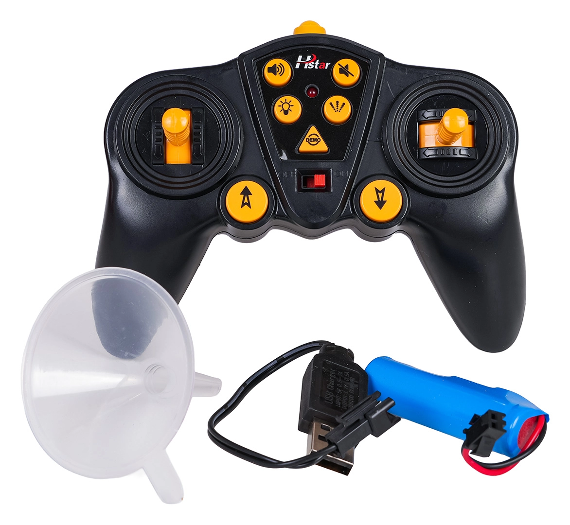 - Mașină de pompieri, telecomandă 2,4 GHz, acumulator 3,7 V, cablu de încărcare USB, pipetă pentru apă
