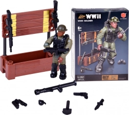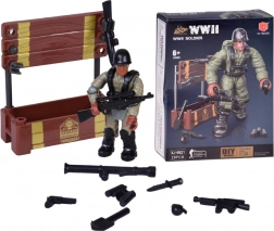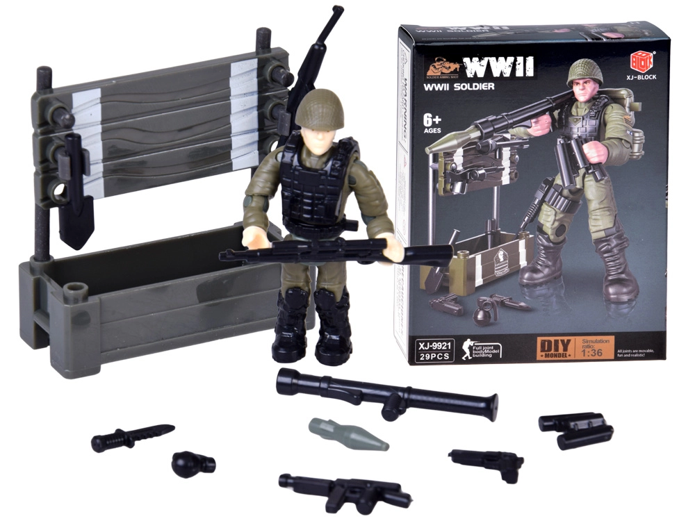 Asamblează o figurină realistă de soldat din perioada Al Doilea Război Mondial din 28 de piese. Setul este excelent pentru fanii militariei, istoriei și seturilor de construcție. Figurină finală are membre mobile, cap și trunchi rotative și, datorită detaliilor atent realizate, arată fidel și autentic. Sunt incluse și accesorii precum ladă, arme și grenade.