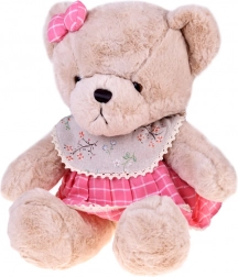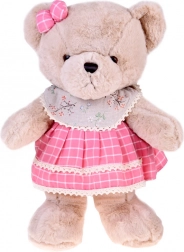 Ursulețul Zuzia cucerește prin blănița bej catifelată, fundița roz de pe urechiușă și rochița în carouri cu tiv din dantelă. Datorită plușului moale, este perfect pentru îmbrățișări și pentru liniștirea de dinainte de somn și, în același timp, este o decorațiune fermecătoare pentru camera copilului.
