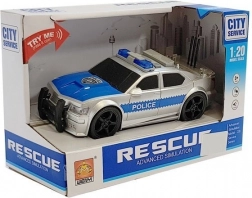 Mașina de poliție argintie la scară 1:20 îi va încânta pe micii iubitori de acțiune. Datorită efectelor de lumină și sunet, celor trei butoane de pe acoperiș și mecanismului cu inerție, copiii se vor bucura de un joc realist de intervenție. Pachetul include baterii, iar portbagajul spate rabatabil și certificarea CE pentru siguranță nu lipsesc.