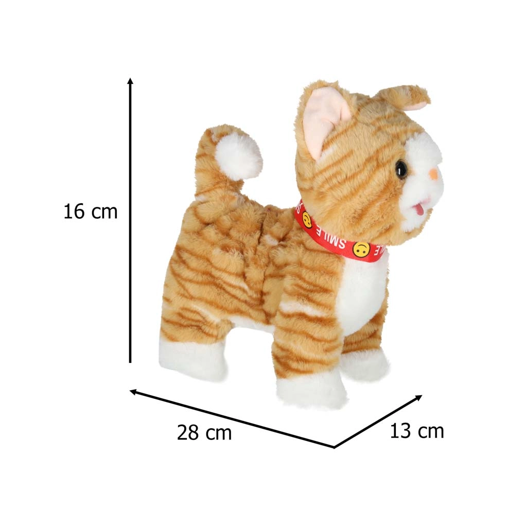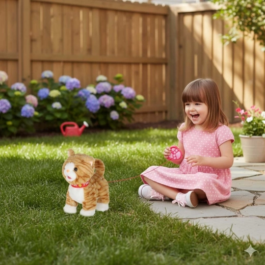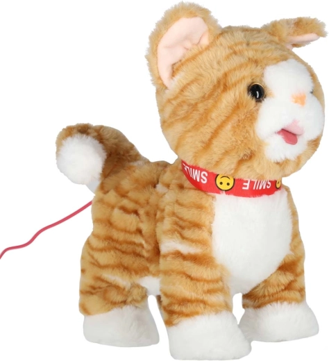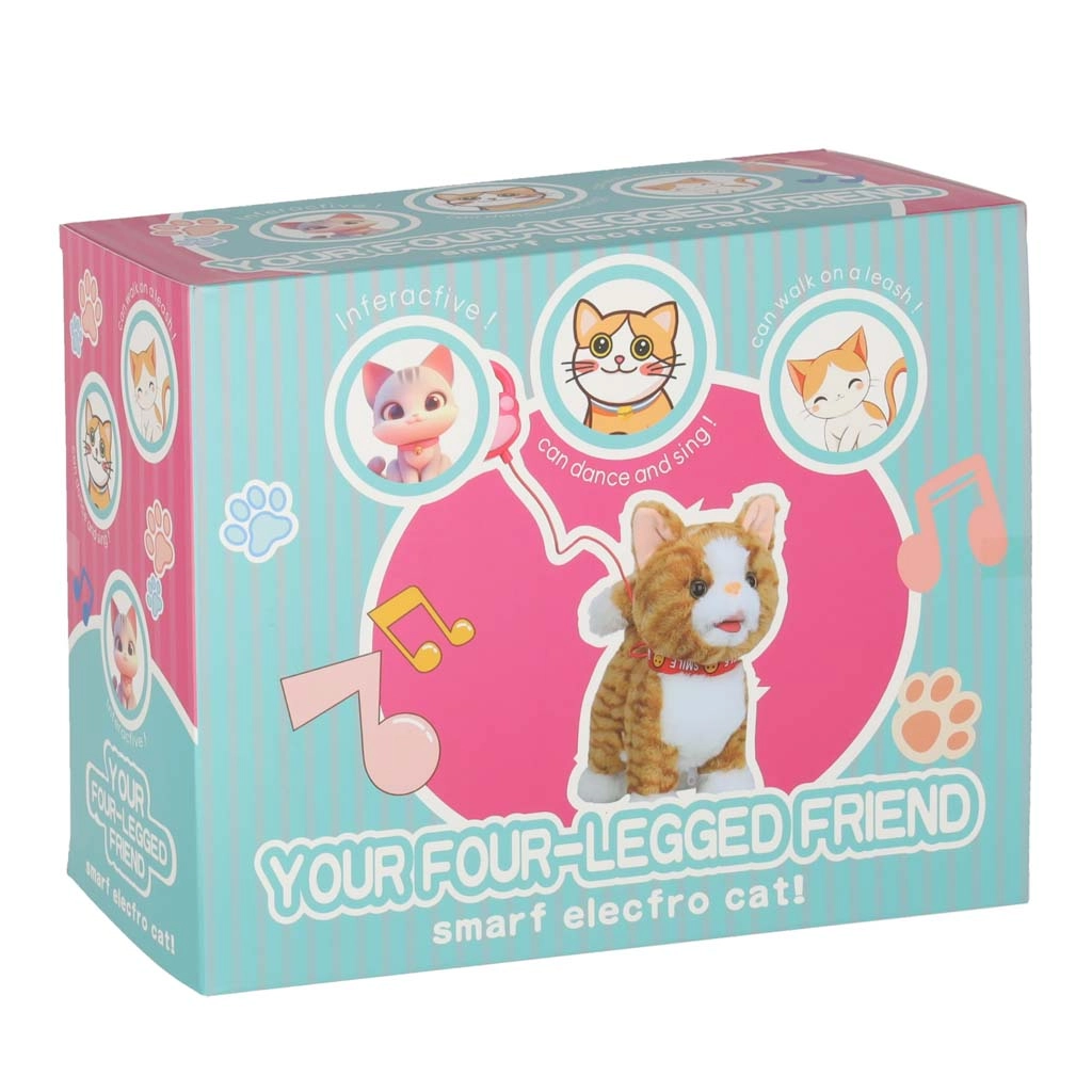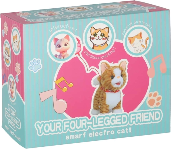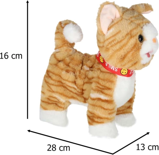 Căutați o jucărie pufoasă care să susțină imaginația și joaca activă? Această pisică interactivă are un corp moale, plăcut, cu blăniță pufoasă, un guler colorat și un controler practic de mână în formă de lăbuță. La apăsarea butonului, pisica pornește și își însoțește mersul cu sunete și melodii.