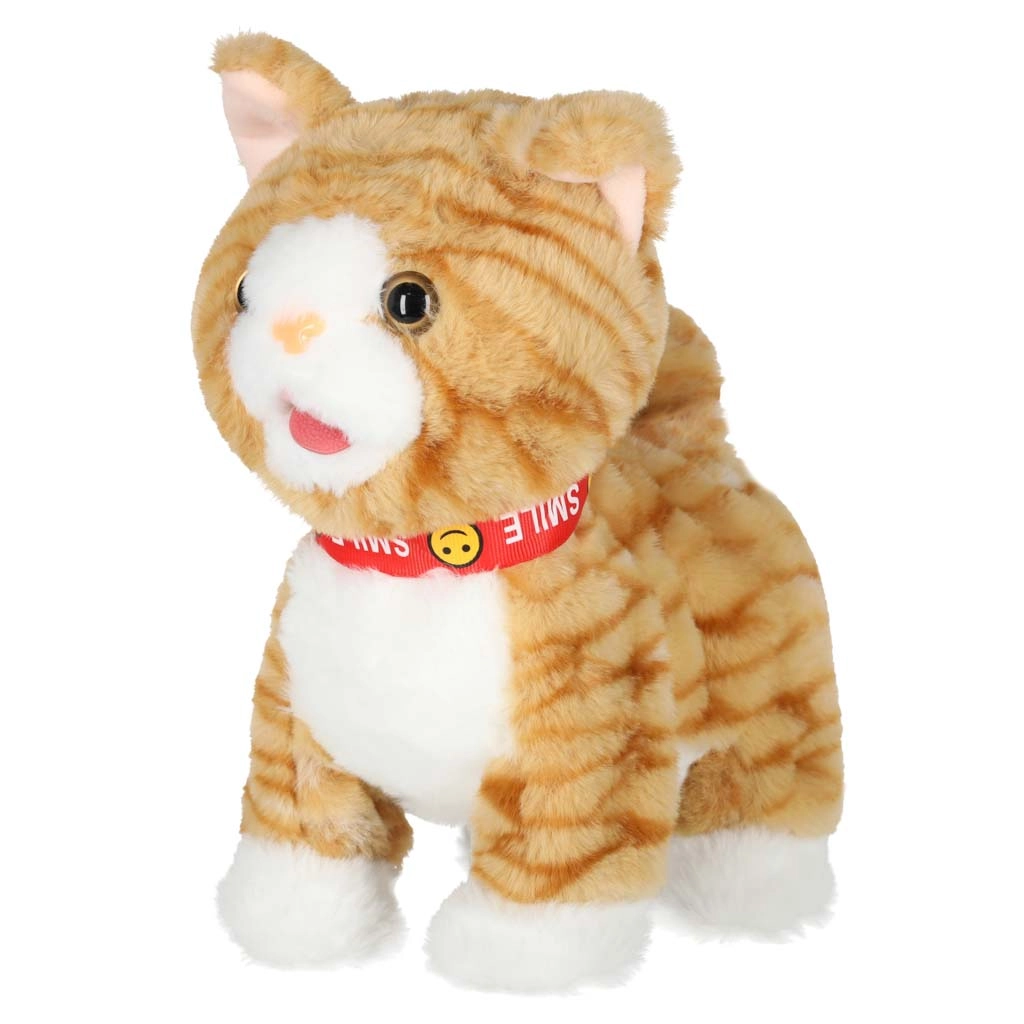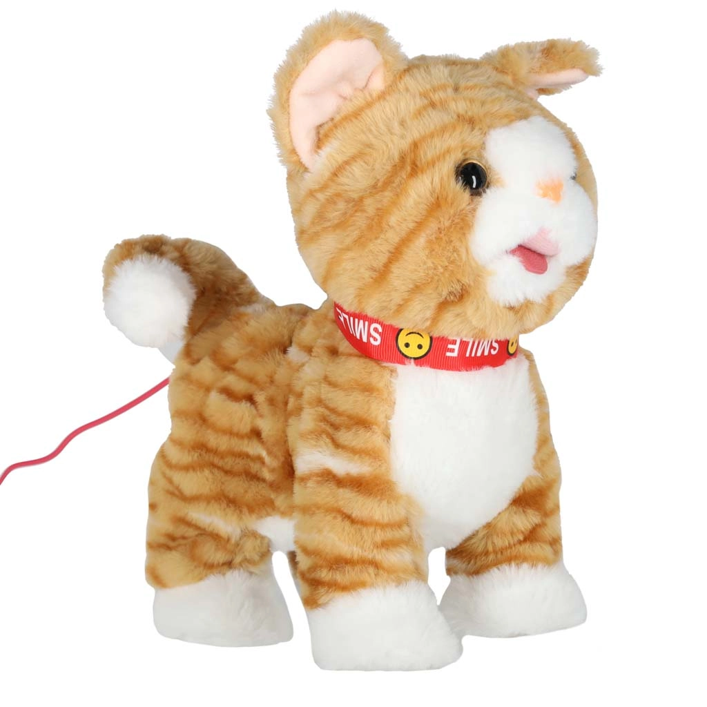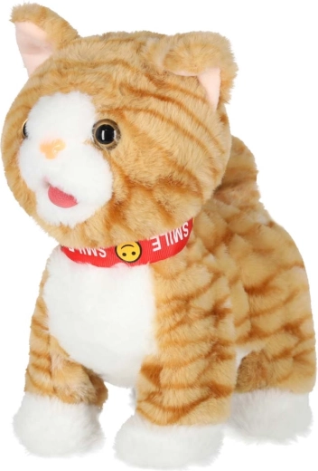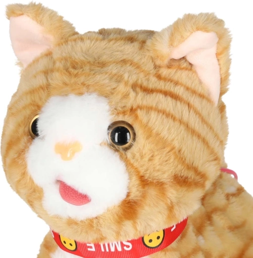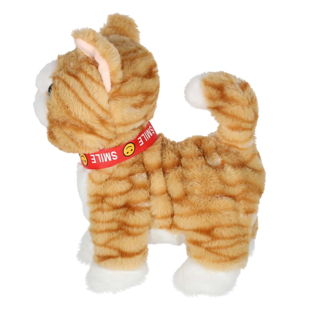 Căutați o jucărie pufoasă care să susțină imaginația și joaca activă? Această pisică interactivă are un corp moale, plăcut, cu blăniță pufoasă, un guler colorat și un controler practic de mână în formă de lăbuță. La apăsarea butonului, pisica pornește și își însoțește mersul cu sunete și melodii.