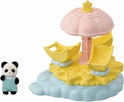 În pachet se găsește o adorabilă figurină de pui de panda cu membre mobile, care poate fi așezată ușor pe scaune sau poziționată în diverse posturi. Dimensiunile compacte ale caruselului (aprox. 15 × 14 × 12 cm) se potrivesc perfect în orice cameră de copil și cu alte seturi Sylvanian Families.