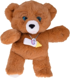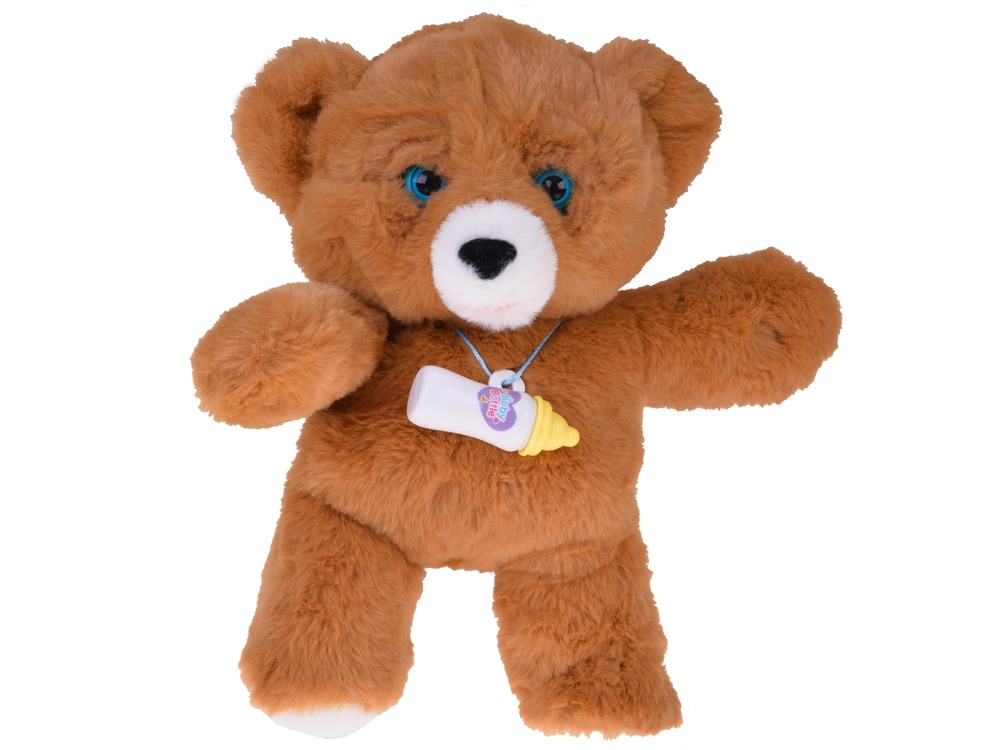 Adorabilul ursuleț interactiv este un companion moale care reacționează ca un bebeluș. După ce este hrănit cu biberonul, scoate sunete de băut, râde, plânge, mormăie, trimite pupici și închide și deschide ochii. Datorită dimensiunii compacte, copilul îl poate lua peste tot și se bucură de un joc blând, educativ, plin de grijă.
