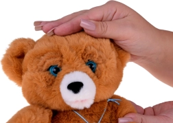 După mângâierea pe căpșor, ursulețul râde, fredonează, uneori plânge și știe să trimită pupici – astfel copiii descoperă diferite emoții.