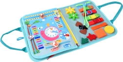 Descoperiți o jucărie educativă inteligentă, inspirată de abordarea Montessori. Cartea moale din fetru, cu închidere cu elastic și nasture, ascunde pagini tematice pline de elemente mobile: ceas cu limbi, fermoare, catarame, șireturi, rotițe dințate, glisoare, forme și numere. Copilul își exersează natural motricitatea fină, concentrarea și autonomia – fără ecrane și oriunde în călătorii.