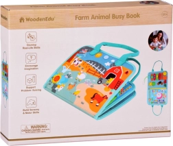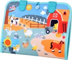 Fiecare pagină oferă un alt tip de activitate: de la îmbrăcare și antrenarea mâinilor, la asamblarea puzzle-urilor și învățarea numerelor, până la calendar, vreme și timp. Setul include și cifre și semne matematice pentru primele exerciții. Ilustrațiile colorate cu fermă și animăluțe captează atenția și susțin recunoașterea culorilor și formelor.