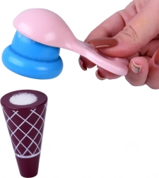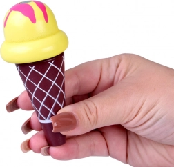 - Conținutul setului: stand de înghețată, 5× înghețată pe băț, 3× cornet, 3× biluță, lingură pentru înghețată.
