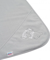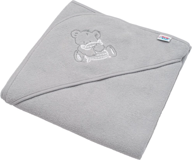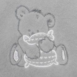 Materialul este blând cu pielea sensibilă a copiilor, nu irită și nu lasă culoare. Varianta gri cu o broderie drăgălașă de ursuleț oferă prosopului un stil universal pentru orice trusou.