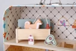 Căsuța pentru animăluțe în valiză 2Kids Toys este o lume mică a marilor aventuri. După deschidere, valiza practică devine un cămin primitor pentru căței, cu dotări bogate și accesorii. Copiii își pot crea cu ușurință propriile scenete și povești și învață să aibă grijă de prietenii lor patrupezi.