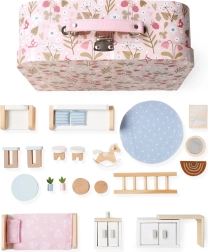 Această căsuță stilată pentru păpuși, în practică valiză, oferă tot ce au nevoie micile păpuși pentru o viață confortabilă. După deschidere, creezi un spațiu de living complet, cu detalii bine gândite, care îi încântă pe copii și îi captivează în joc. Datorită dimensiunilor compacte, o poți lua ușor în excursii, la bunici sau în vacanță.