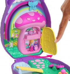 Descoperă lumea magică de buzunar cu geanta compactă Polly Pocket Familia de arici – set de joacă portabil cu micro-păpuși, animăluțe și o mulțime de accesorii. Deschide simpatica geantă în formă de arici și te așteaptă distracție dublă: grădină magică și îngrijirea puilor de animale. Copiii se vor bucura de elemente interactive precum „hrănirea” micului arici și scutecul său „umed”, leagăn mobil, căsuță-ciupercă și posibilitatea de a zbura pe cer datorită mecanismului glisant.