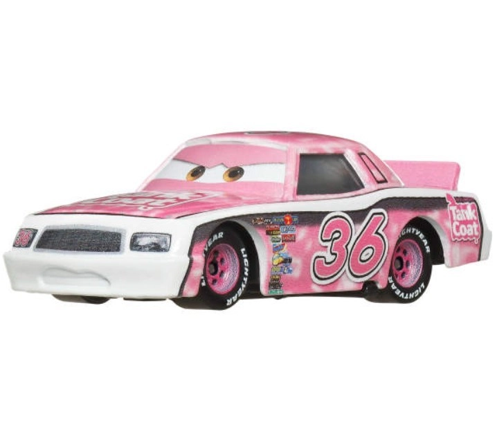 Eroii îndrăgiți din filmul Mașini prind viață în modelul metalic realizat cu precizie Tank Coat #36. Mașinuța la scară 1:55 impresionează prin grafici de curse autentice, numărul 36 și logo-uri ale sponsorilor, inclusiv combinația caracteristică roz-alb. Datorită execuției de calitate, este grozavă atât pentru micii piloți, cât și pentru colecționari.