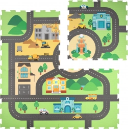 Puzzle-ul educațional din spumă HUMBI îmbină învățarea și joaca într-un singur produs. Datorită drumurilor și clădirilor imprimate, copiii pot crea cu ușurință propriul oraș, pot planifica trasee și își pot dezvolta imaginația. Suprafața este moale, absoarbe șocurile și protejează de frigul pardoselii.