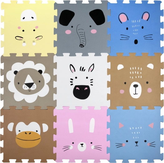 Acest covoraș educațional din spumă HUMBI îmbină joaca și învățarea într-un singur produs. Nouă piese colorate cu motive de animăluțe se îmbină ușor ca un puzzle și creează un mediu moale și sigur pentru distracția zilnică. Datorită suprafeței antiderapante și stratului de amortizare plăcut, este ideal pentru camera copilului sau colțul de joacă.