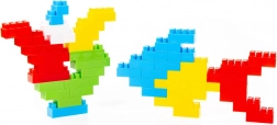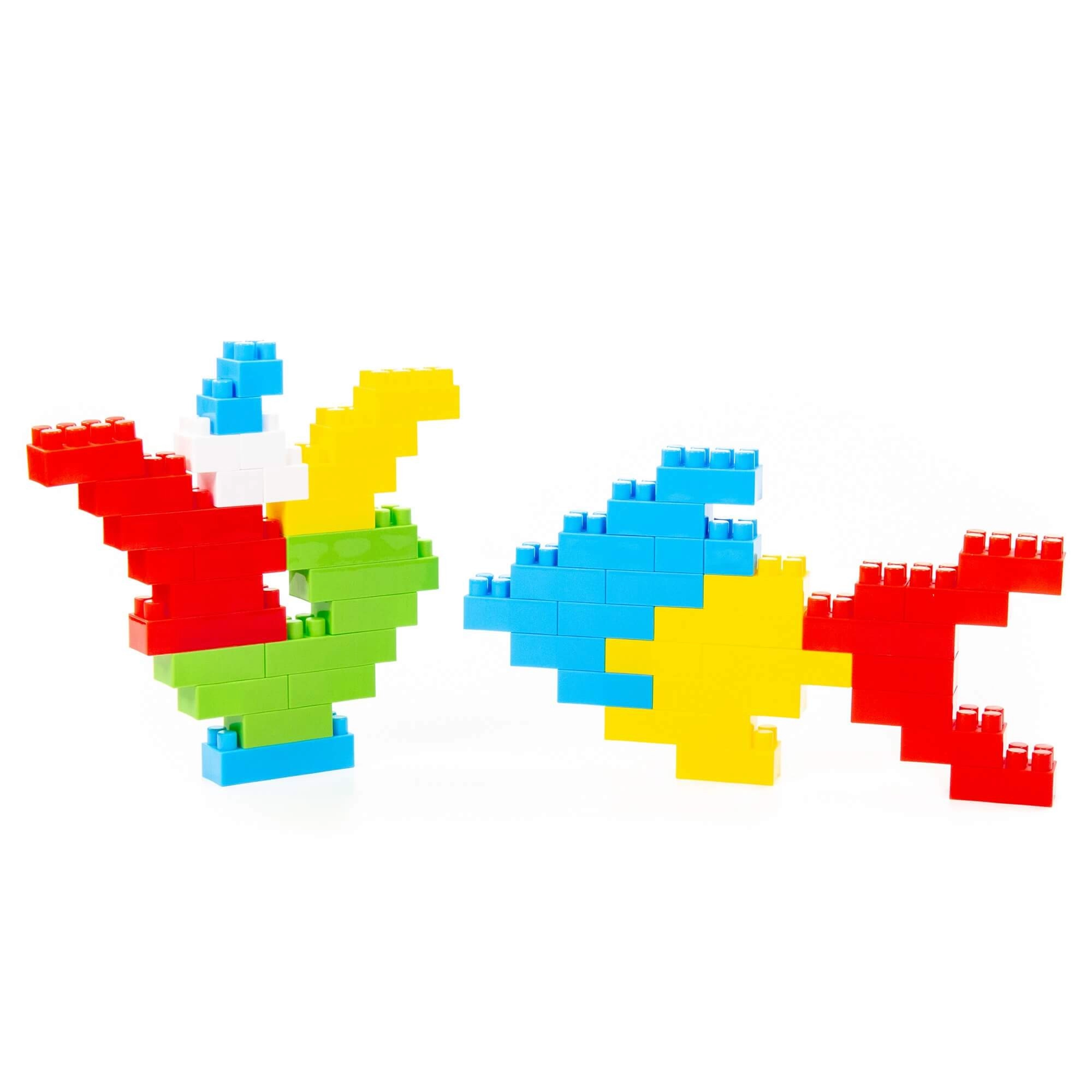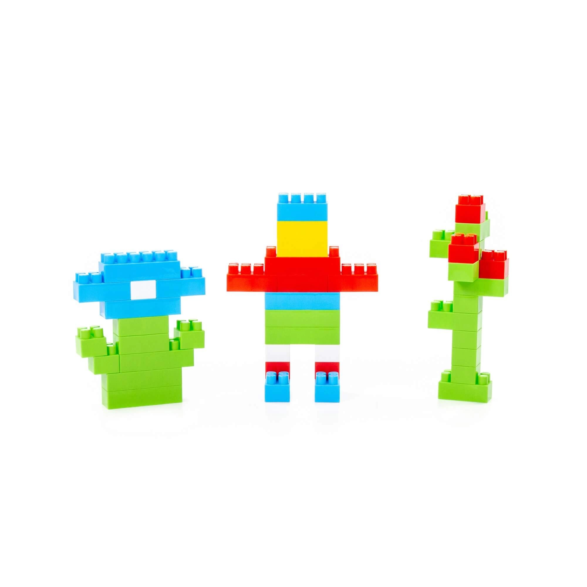 Cărămizile mari și colorate le permit copiilor să creeze modele variate și să-și dezvolte imaginația și motricitatea fină.