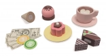 Cești cu farfuriuțe, deserturi, cupe de înghețată, tacâmuri, monede și bancnote – în total 46 de piese pentru o mulțime de scenarii.