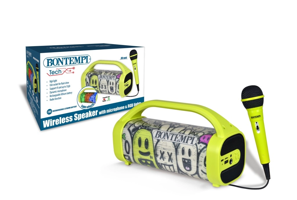 Dispozitivul este ușor, compact și potrivit pentru călătorii, petreceri în grădină sau camerele copiilor. Bateria litiu reîncărcabilă integrată asigură muzică fără priză, iar radioul FM și slotul micro SD îți extind opțiunile de redare.