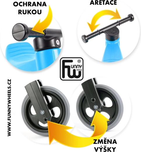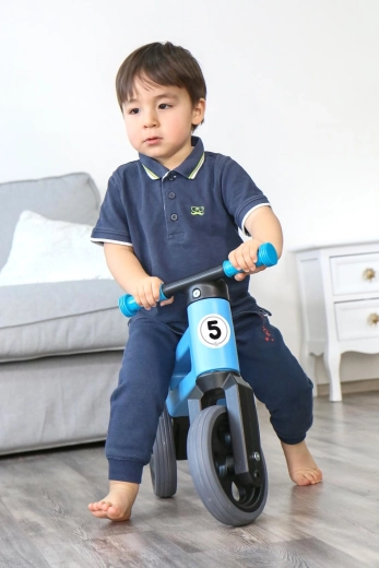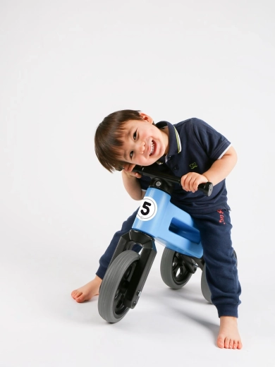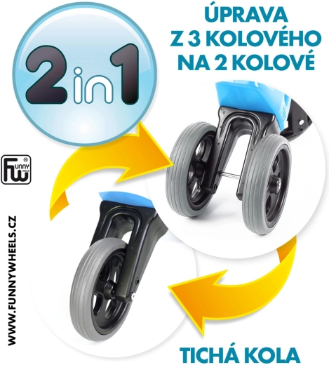 FUNNY WHEELS Rider Sport 2‑în‑1 este o alegere excelentă pentru primele deplasări ale micuțului. Începe stabil pe trei roți, apoi trece ușor la varianta pe două roți pentru antrenarea echilibrului. Datorită celor două poziții de înălțime ale șeii, bicicleta de echilibru îl va însoți mai mult timp și îi va susține dezvoltarea naturală a motricității și coordonării.