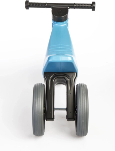 Bicicleta este realizată din plastic durabil, sigur pentru sănătate, cu îmbinări netezite, are anvelope silențioase cu aderență bună, limitare a rotației furcii împotriva răsucirii ghidonului și mânere lărgite pentru protecția mâinilor copiilor. Este ideală pentru interior și exterior și se curăță ușor.