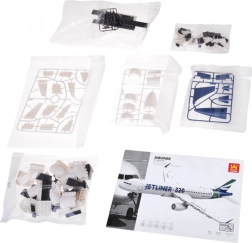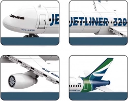 Setul de construcție avion de pasageri JETLINER 320 este o alegere excelentă pentru copii și adulți care iubesc construcțiile și aviația. Din 133 de piese atent realizate vei asambla un model bimotor în culoare albă elegantă, cu detalii albastru‑verzi. Datorită autocolantelor, modelul capătă un aspect și mai realist și arată minunat atât pe raft, cât și în timpul jocului.