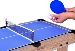 Îți trebuie doar câteva secunde ca să schimbi suprafața de joc: de la țintirea precisă la biliard, la schimburile dinamice la ping‑pong, pucul fulgerător la air hockey și până la golurile palpitante la fotbalul de masă. În pachet găsești tot ce ai nevoie – de la bile, tacuri și triunghi la palete și mingi, până la contoare de scor și puck-uri.