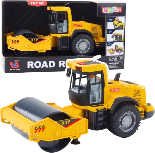 Compactor rutier realist pentru micii pasionați de utilaje de construcții, oferă efecte de lumină și sunet, tambur rotativ și construcție durabilă din materiale sigure. Excelent pentru jocuri tematice acasă și în aer liber, dezvoltă imaginația și motricitatea fină.