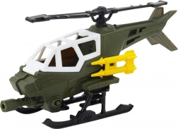 Setul combină un elicopter militar rezistent, în stil clasic de camuflaj cu nuanțe verde-negru și detalii galbene, cu o figurină de soldat articulată. Copiii pot așeza figurina în cabină și pot crea scenarii captivante – de la zboruri de antrenament până la misiuni de salvare.
