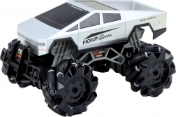 Pickup RC argintiu, elegant, la scară 1:16, oferă control 2,4 GHz, funcție completă 11CH, iluminare LED și un impresionant efect de fum (spray). Datorită anvelopelor mari pentru teren accidentat, este ideal pentru condus în interior și în exterior, oferind copiilor ore întregi de distracție plină de acțiune.