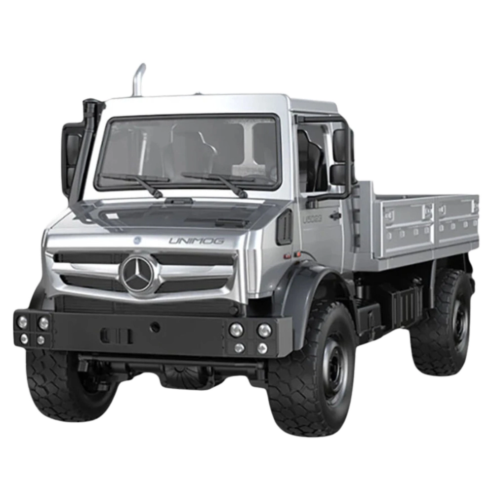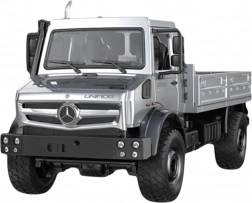 Mașina off-road RC MERCEDES-BENZ UNIMOG 4x4 este un model detaliat, cu elemente metalice, uși și capotă funcționale. Accelerația și direcția proporțională permit porniri line, frânare controlată și viraje precise. Emitterul stabil pe 2,4 GHz oferă control fiabil fără interferențe, cu rază de acțiune de până la 25 m.