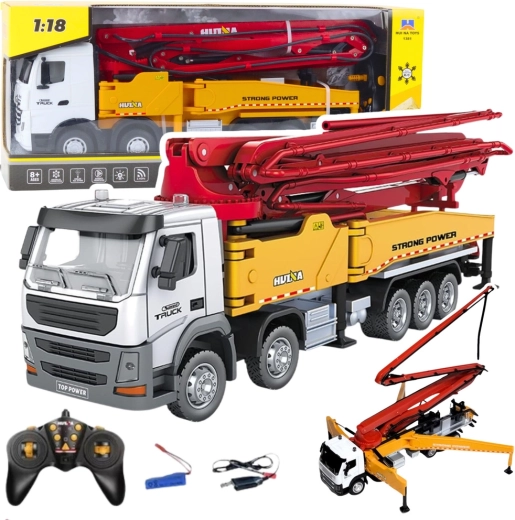 Realistă betonieră RC cu pompă HUINA la scară 1:18 care oferă o experiență grozavă pentru fanii utilajelor de construcții. Dispune de 11 canale pentru control complet, platformă rotativă 630°, braț extensibil până la 120 cm, stâlpi de stabilizare și funcție de pulverizare a apei. Datorită controlului 2.4 GHz, efectelor luminoase și sonore și acumulatorului performant, distracția este realistă și de durată.