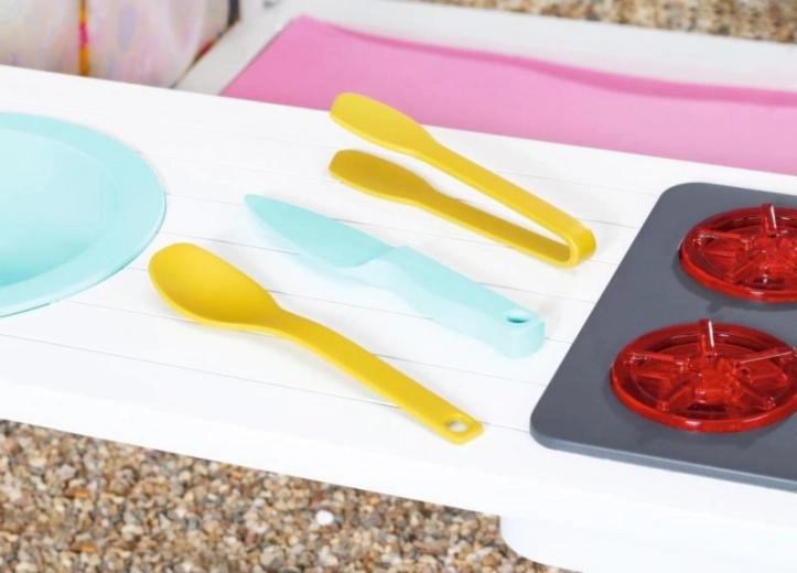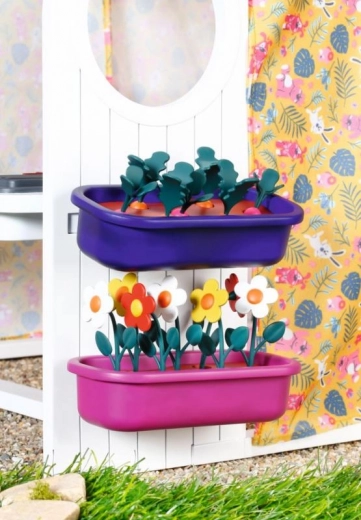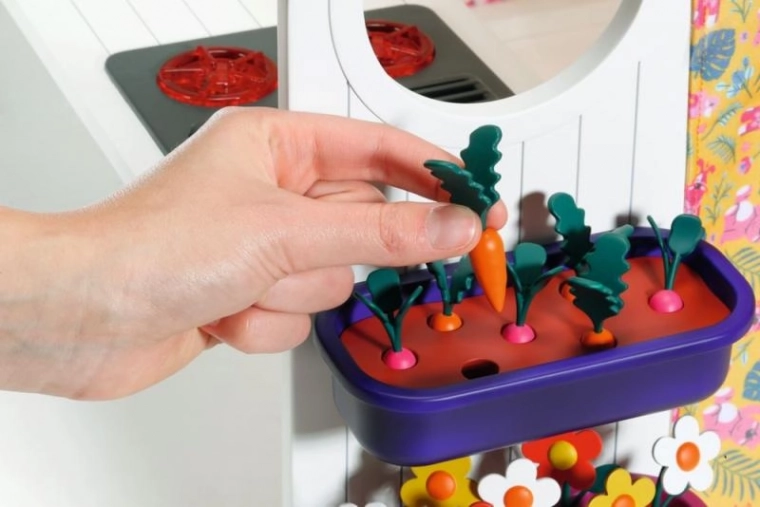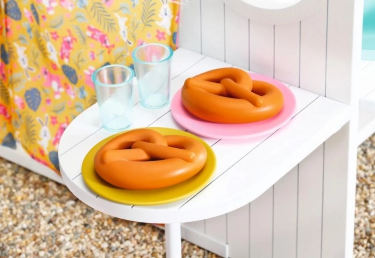 Căsuța este dotată cu ghivece și o grădină de legume pentru recoltarea ingredientelor pentru cinele imaginare. Copiii pot pregăti mâncarea pe aragaz și aranja masa pentru păpușile lor, servind salate și covrigei.