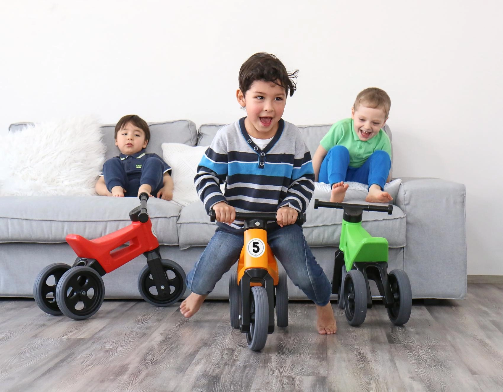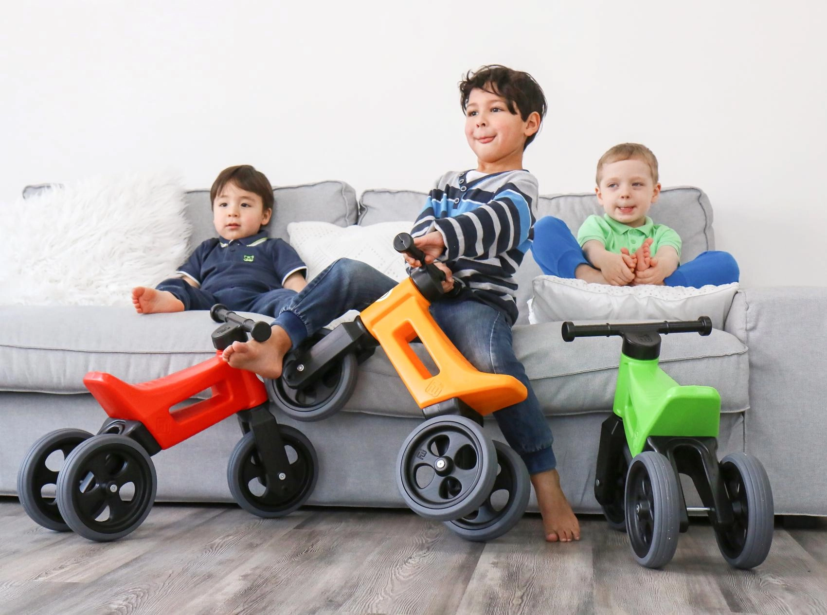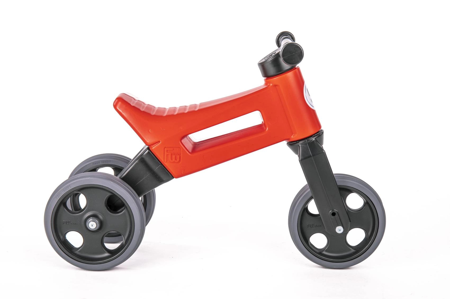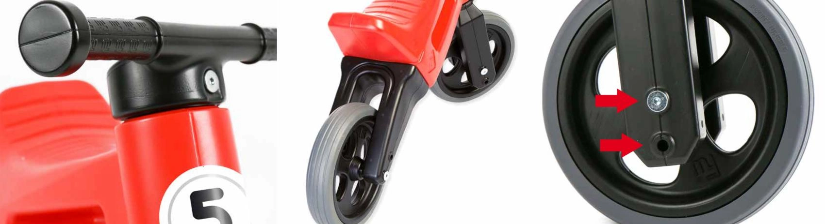 Bicicleta fără pedale cehă originală FUNNY WHEELS Rider Sport este concepută pentru a facilita copiilor primele etape către mersul pe bicicletă. Datorită sistemului 2-în-1, o transformi în câteva minute din tricicletă în bicicletă cu două roți, iar cu cele două poziții de înălțime ale șeii (diferență de 3 cm) însoțește copilul în diferite etape de creștere.