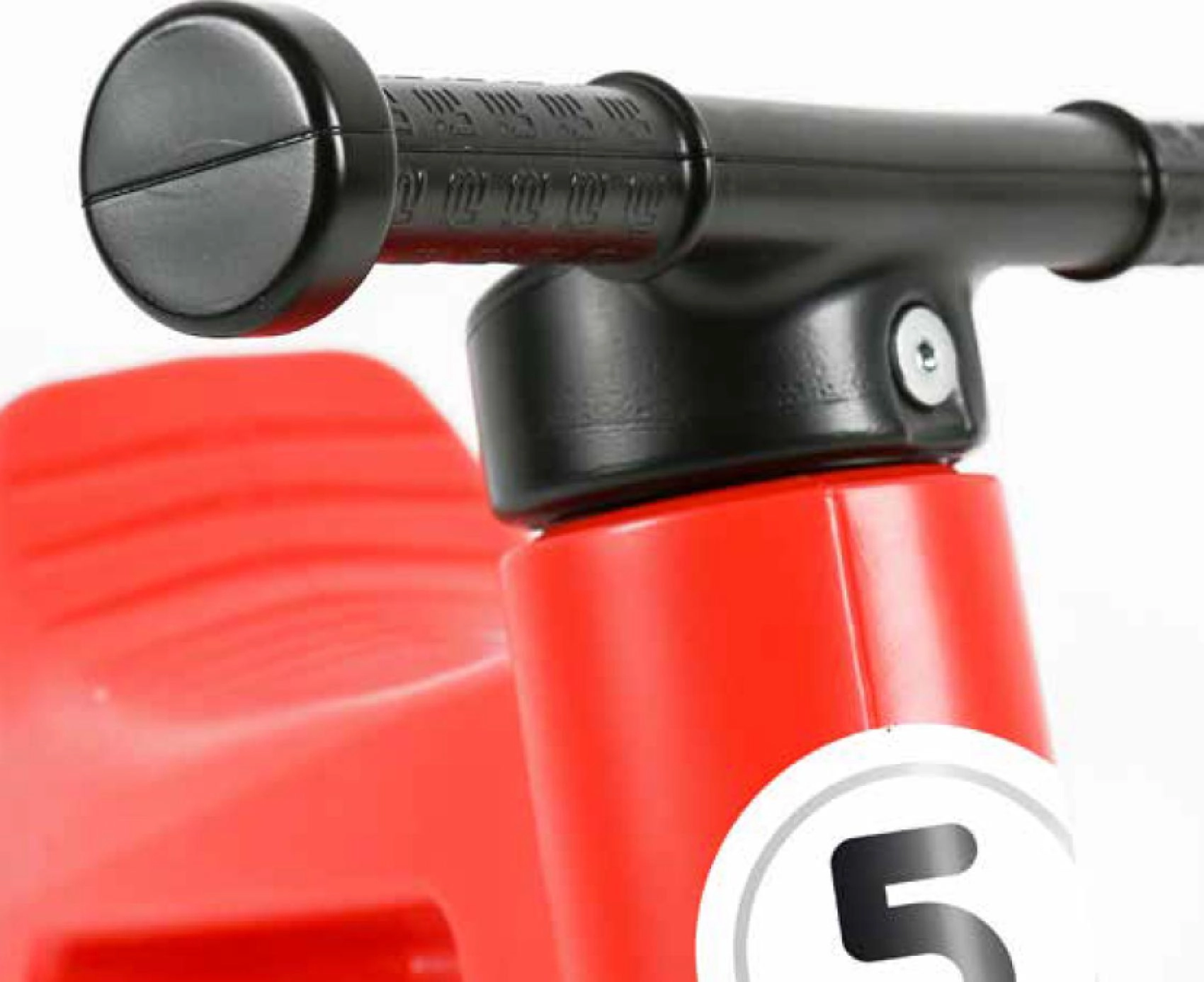 Bicicleta are anvelope silențioase, care nu alunecă, finisare netedă și sigură din plastic rezistent, non-toxic, precum și limitarea unghiului de virare al furcii, astfel încât ghidonul să nu se răsucească. Copiii își antrenează în mod natural echilibrul, coordonarea și motricitatea și se bucură de multă distracție atât în interior, cât și afară.