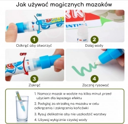 - desen doar cu apă, fără cerneală și culori; uscare rapidă; compact și ușor