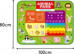 Descoperă covorașul cu apă Woopie Animal Park, distractiv și sigur, care aduce copiilor învățare prin joacă fără murdărie. Formatul mare 100 × 80 cm și imprimarea educativă pe ambele fețe cu alfabet, cifre, forme, animale, sarcini și ceasuri susține creativitatea, motricitatea fină și gândirea logică. Setul include markere cu apă, rolă, ștampile și șabloane; este suficientă apa – covorașul este reutilizabil și după uscare este din nou gata de folosit.