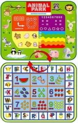 - Design educativ pe ambele fețe: alfabet, cifre, animale, sarcini, ceasuri și forme geometrice.