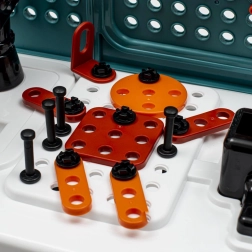 Setul cu 103 piese permite înșurubare, prindere, tăiere și „găurire” în cadrul unor proiecte ingenioase. Bancul este compact, ușor și se potrivește cu ușurință în camera copilului. O alegere excelentă pentru dezvoltarea motricității, imaginației și a primelor obiceiuri de lucru.