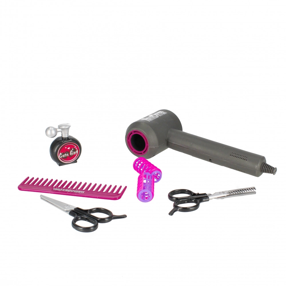 Setul de coafură distractiv pentru micii stiliști oferă tot ce au nevoie copiii pentru jocul de salon. Include uscător de păr, pieptene, biguudiuri, foarfecă și pulverizator. Ideal pentru copii de la 3 ani.