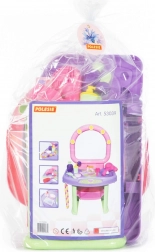 - Măsuță cu oglindă și accesorii tematice (ex. foehn, pieptene, perie, sticluțe „cosmetice”)