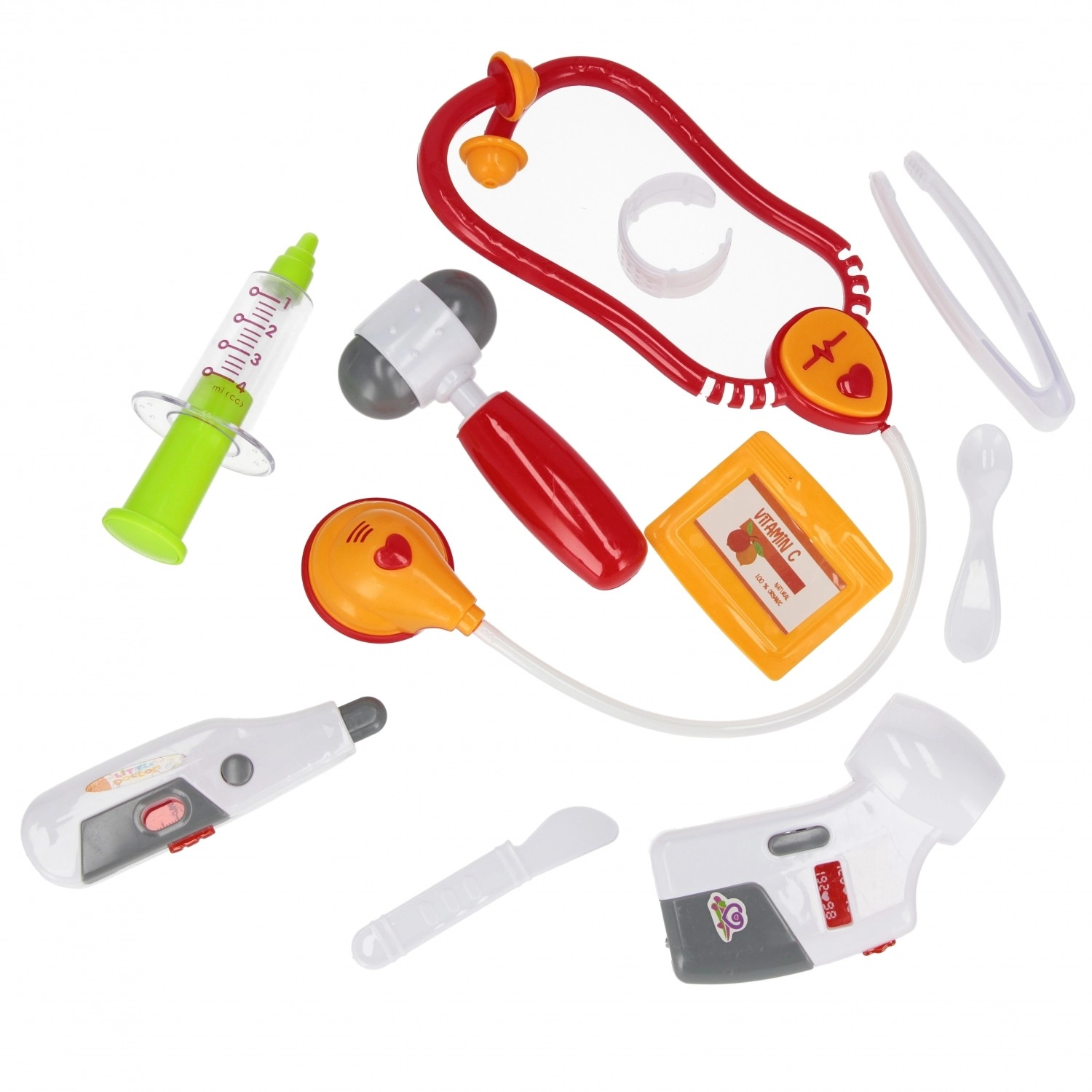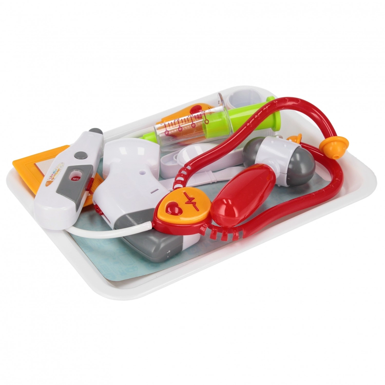 Stetoscopul, termometrul, seringa, otoscopul și ciocănelul reflex oferă copiilor senzația unui consult adevărat și le stimulează curiozitatea naturală.