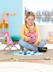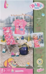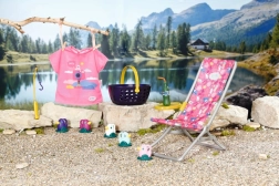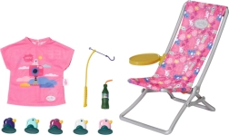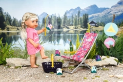 Setul include un tricou roz casual cu un imprimeu adorabil, șezlong cu masă, sticlă de limonadă, coș, 5 rățuște și undiță. Este un accesoriu de calitate pentru păpușa originală BABY born, oferind ore nesfârșite de joacă imaginativă și variată.