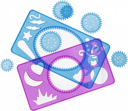 Acest set creativ de spirograf permite desenarea unor modele spiralate precise și superbe cu ajutorul rotițelor dințate și al șabloanelor. Este ideal pentru copii de la 3 ani și pentru adulți care caută o activitate relaxantă și inspirantă. Datorită șabloanelor transparente și dimensiunilor variate ale rotițelor, poți crea cu ușurință combinații nesfârșite de forme și linii.