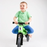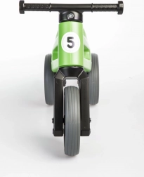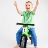 Siguranța este asigurată de limitarea rotației furcii, capetele lățite ale gripurilor protejează mâinile, iar roțile late oferă stabilitate. Construcția ușoară (doar 1,9 kg) facilitează transportul și manevrarea. Bicicleta de echilibru ajută la dezvoltarea motricității, echilibrului și coordonării și motivează copiii la plimbări mai lungi și mai distractive.