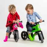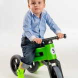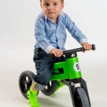 FUNNY WHEELS Rider Sport 2‑în‑1 aduce copiilor bucuria mișcării și părinților o soluție inteligentă pe termen lung. O transformi în câteva minute din tricicletă în bicicletă cu două roți și setezi două poziții ale șeii în funcție de creșterea copilului. Anvelopele silențioase nu scârțâie și nu alunecă, fiind ideale pentru suprafețe netede și trotuare exterioare.